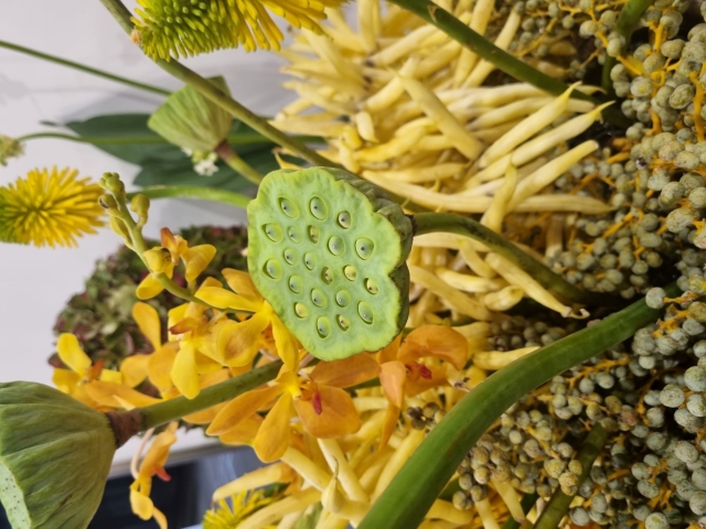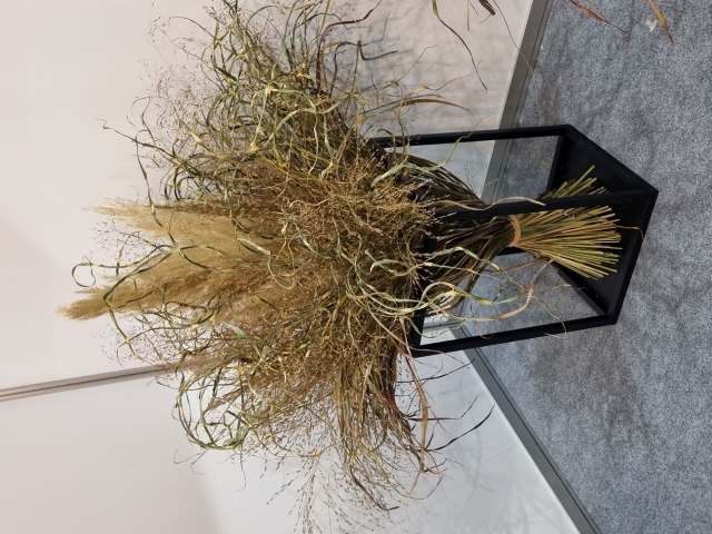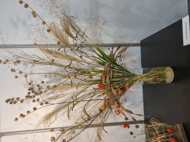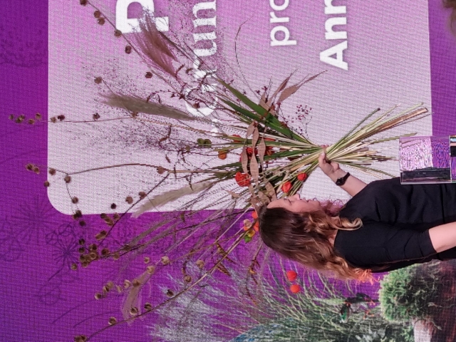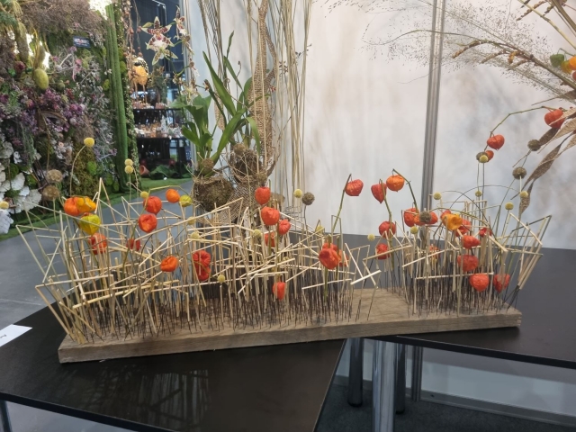 Wystrój stanowiska po raz kolejny skupiał się na roślinach gruntowych o charakterze jesiennym. Zwrot ku roślinom uprawianym w gruncie oraz rodzimym gatunkom wynika z chęci podkreślenia ich rosnącego znaczenia zarówno we florystyce, jak i architekturze krajobrazu. Na stanowisku pojawiły się okazałe bukiety z traw ozdobnych ze Szkółki Traw Henschke oraz kompozycje wykonane przez florystki z sekcji florystycznej SITO: Różę Marciniak, Agatę Witkowską oraz Annę Wawrzyniak. Po pokazach ekspozycja wzbogaciła się o prace wykonane na scenie.